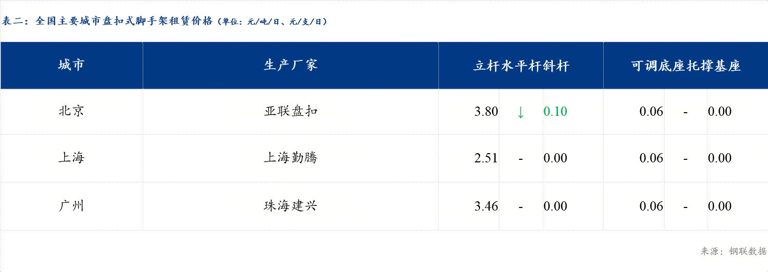 今日全国重点城市盘扣式钢管脚手架日租赁价格弱稳。