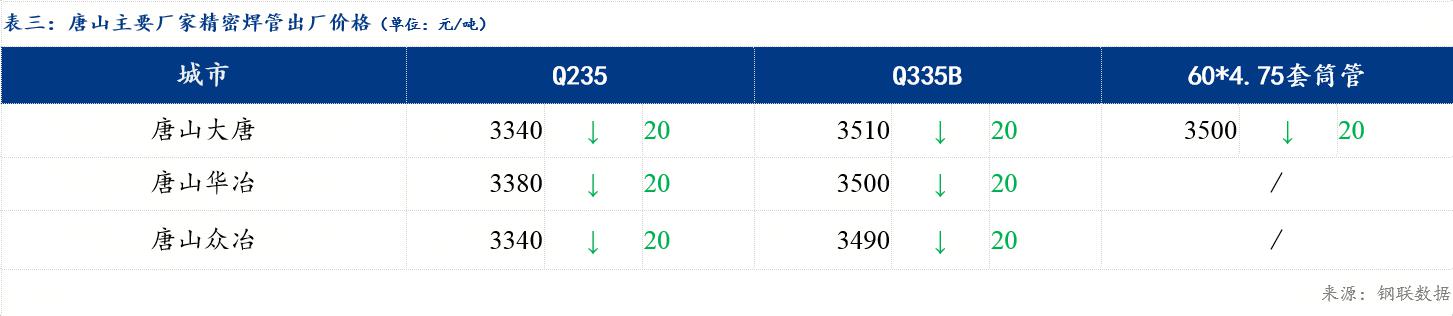 唐山精密焊管主流厂家出厂价格降20元/吨,成交一般。